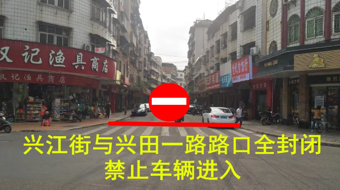 2、兴江街(侨港街路口至兴田一路路口)实行全封闭,封闭时间为2019年4月1日至6月5日。