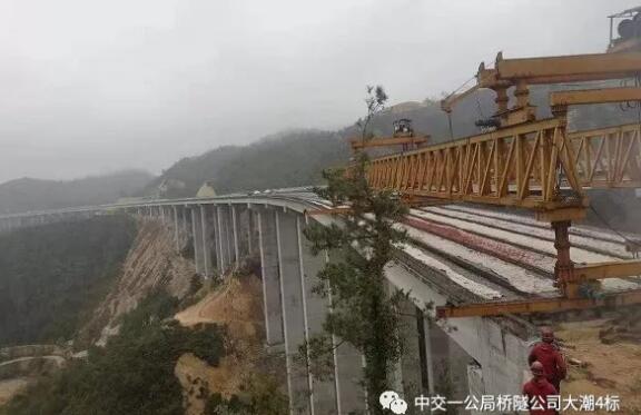 2019年12月21日,随着塘尾互通立交A1匝道桥最后一片预制T梁架设完成,大潮高速TJ4标1195片预制梁全部架设完成。
